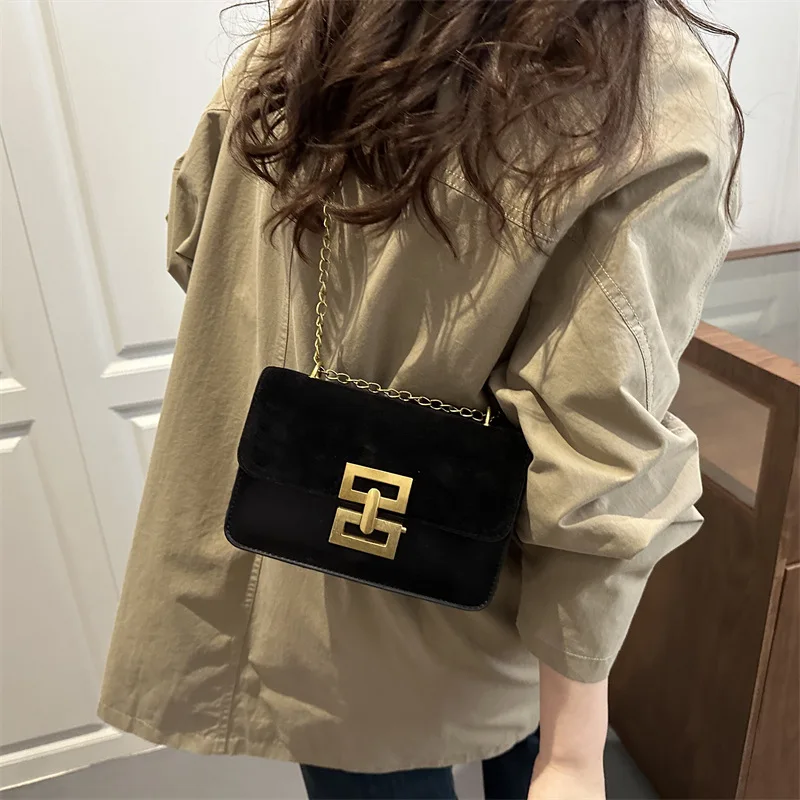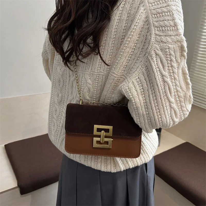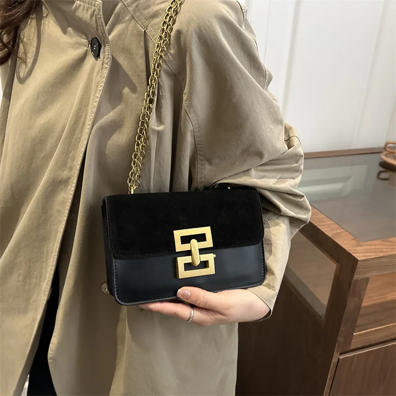 Texture Lock Crossbody Bag with Chain 2026 New Retro Shoulder Bag Trendy Women's Solid Color Small square Bag